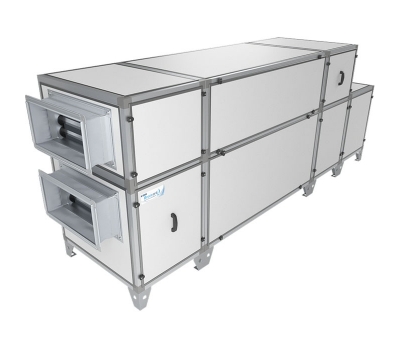 • Секциями осушения, смешения, резервирования вентилятора, дополнительного нагревателя (для северного исполнения). Для приточных установок выпускаются совместимые вытяжные модели, скорости вращения их вентиляторов синхронизированы (приточная установка управляет вытяжной).