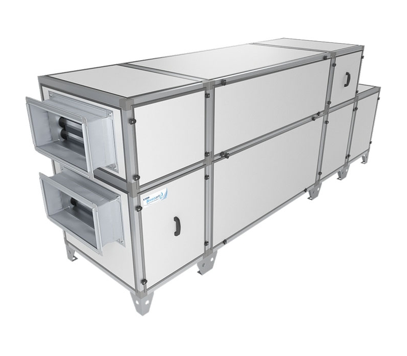 Подвесная приточно-вытяжная установка Breezart 2000 Lux RP F с пластинчатым рекуператором (с системой защиты от замерзания, эффективная работа до -30°С) и электрическим нагревателем. Комплектуется воздушными клапанами с электроприводом, системой цифровой автоматики JetLogic с цветным сенсорным пультом управления и всеми необходимыми датчиками. Вентиляторы Ebmpapst серии EC (произведены в Германии).