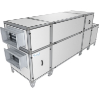 Серия Lux RE. Приточно-вытяжная установка с трехкаскадным энтальпийным рекуператором (с переносом влаги) и электрическим нагревателем. Относительная влажность вытяжного воздуха в холодный период года должна быть не более 40%.