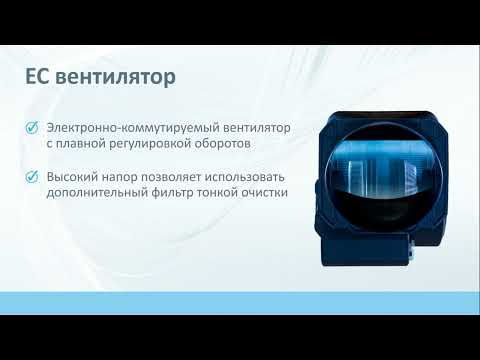 • Вентилятор ведущего европейского производителя EBMPapst (Германия). В большинстве моделей установлены новейшие электронно-коммутируемые вентиляторы EBMPapst серии EC, отличающиеся широким диапазоном регулирования скорости, высоким КПД и сниженным уровнем шума. Эти вентиляторы имеют защиту от пропадания фазы и механической блокировки рабочего колеса. Их пусковой ток не превышает 120% от номинала.